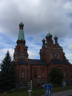 We went to Tampere, the 3rd largest city in Finland last Wednesday, and it was really neat! There were a lot of people, and most of them acted just like our teacher Anni said that they would- like typical Finns, I suppose. One thing all of us realized was that there were many people with "interesting" style, and no one even looked at them funny at all. If they dressed like that or wore their hair that many colors in the States, they would definitely get some funny looks. But we just hung out around the markets, and went to Hesburger for the first time, where I tried to order in Finnish, but he just answered me in English. By the end of the year, I'll be able to do it all in Finnish! In the market plate (which was all outside), there were 2 really big lines. One for some type of French bread that smelled wonderful, and the other for churros with nutella. The 2nd one had the shortest line of the 2, and so of course I had to get some! Also, there were stands that had all sorts of kinds of olives, one with candies, and another with dried sausage (not sure what that is, but it was definitely interesting)